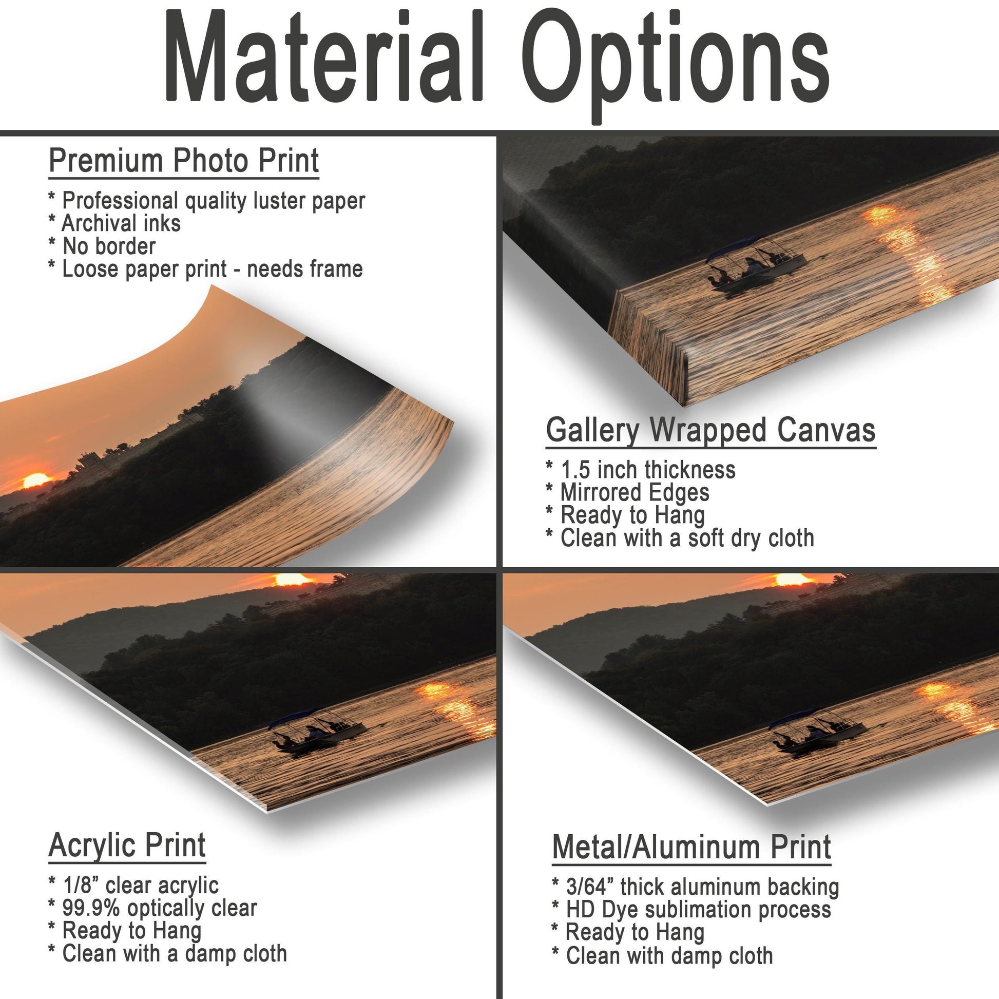 The Hudson River Sunset Print offers breathtaking metal wall art and acrylic wall art options that showcase a serene sunset haze over a vibrant river view. This Hudson River Sunset Print brings the calming beauty of the river right into your space, transforming any room with high quality prints designed to last. Available as aluminum metal print, glossy photo paper, ready to hang canvas, and modern acrylic prints, each option uses UV resistant ink to ensure your artwork remains vivid for years.