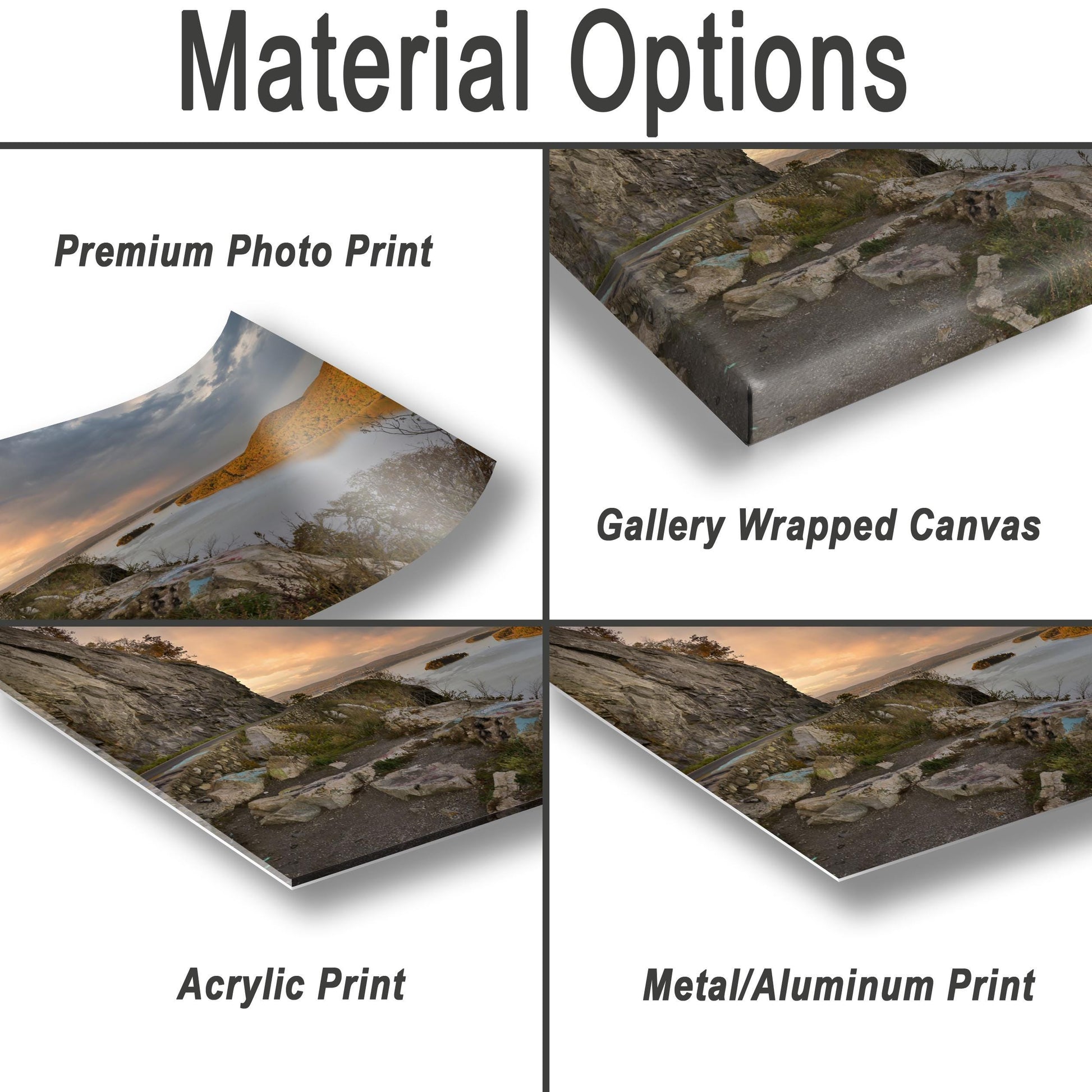 Additional formats include aluminum metal prints on 3/64-inch thick panels with glossy coating and rounded edges for an elegant finish. Acrylic photo prints use .22-inch museum-quality acrylic to enhance color vibrancy and depth with UV resistant ink to prevent fading. All products arrive ready to hang right out of the box, making installation simple and convenient.