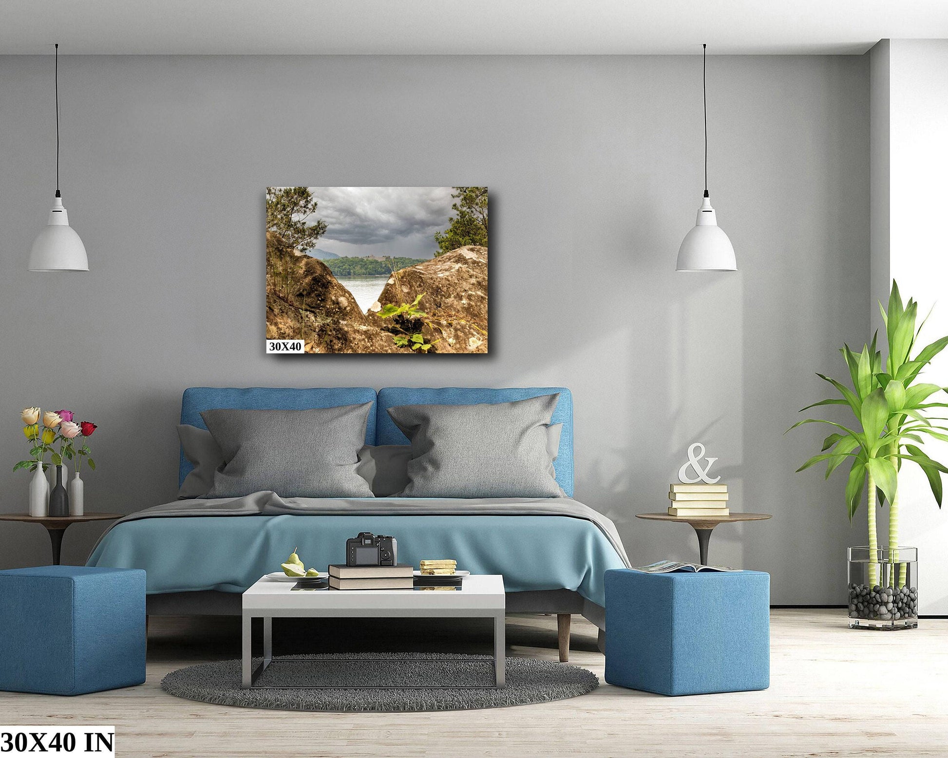 This Hudson River wall art has been carefully crafted from a rare photographic moment when a storm was rolling in over the river. The artist’s unique experience chasing his dog led to discovering the perfect natural frame for this iconic view. The authenticity of this scene adds emotional value and makes it a standout piece among Hudson Valley art collections.