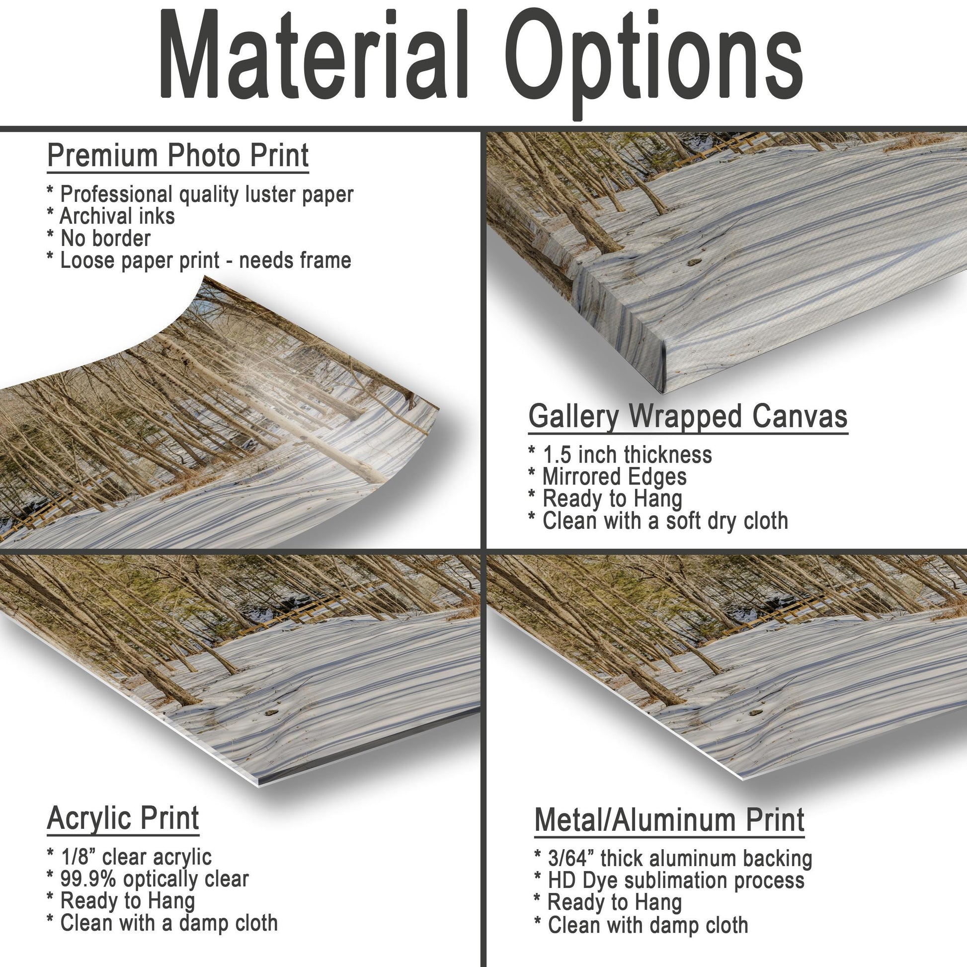 This Hudson Valley canvas print captures a breathtaking New York snow scene, perfect for anyone seeking serene winter road photography to enhance their home or office. Featuring pristine snow photo quality, this scenic winter wall art brings the calm and beauty of untouched snow landscapes indoors. Whether you choose the ready to hang canvas, metal photo print, acrylic wall decor, or glossy photo paper print, each option offers UV resistant prints that maintain vibrant colors for years.