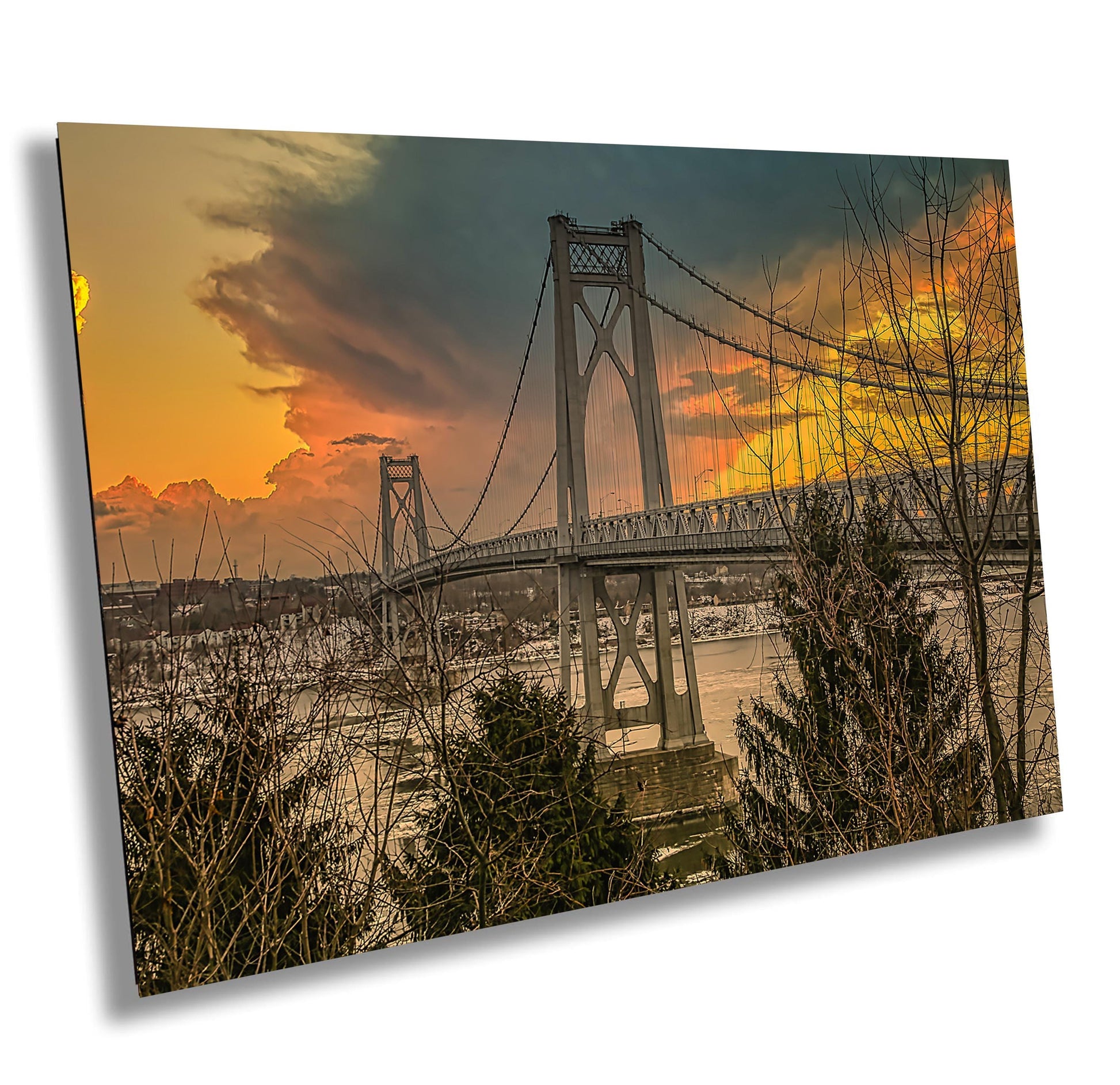 The Mid Hudson Bridge Canvas is a stunning piece of Hudson Valley Photography that brings elegant wall decor into your space while capturing the serene beauty of the iconic bridge at sunrise. This ready to hang canvas print offers a vivid, high-quality image that transforms any room with a touch of New York City decor. Crafted with UV resistant ink, this canvas wall decor preserves the rich colors and intricate details of the sunrise bridge photo, ensuring lasting vibrancy.