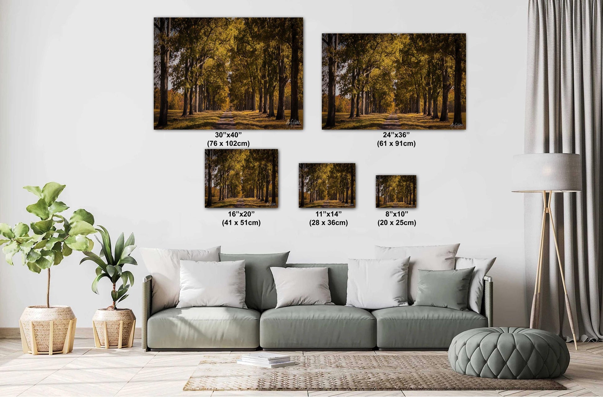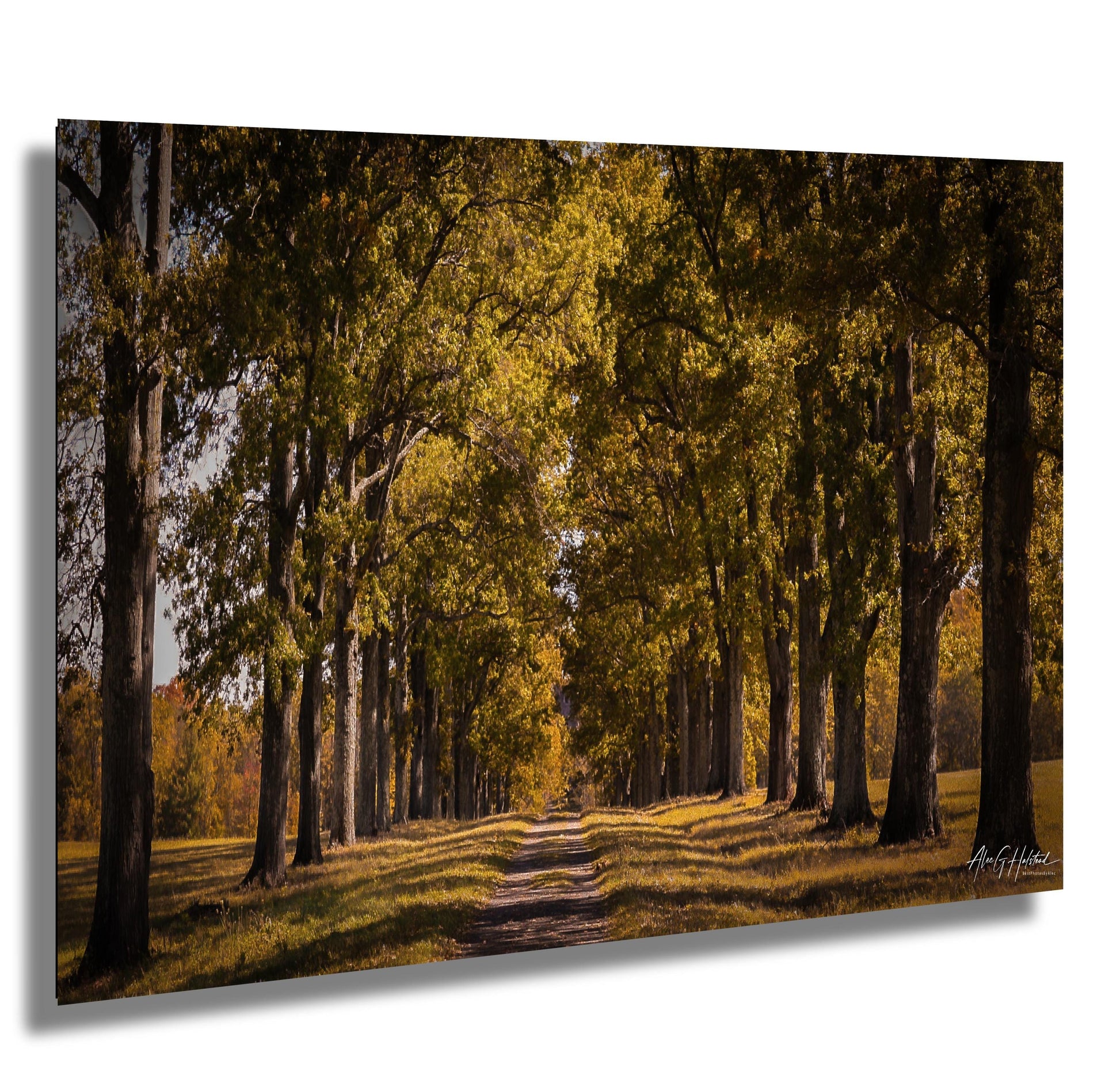 This New Paltz photography print captures a sunlit country scene along a tree lined path in the Hudson Valley, offering stunning wall art that brings the beauty and history of the region into your home. Created by veteran photographer Alec Halstead, this autumn landscape photo highlights the golden light filtering through oak canopies, evoking a quiet, timeless atmosphere. Perfect for enhancing your living room or office, this print connects you with the historical trail artwork once traveled by Lenape people centuries ago.