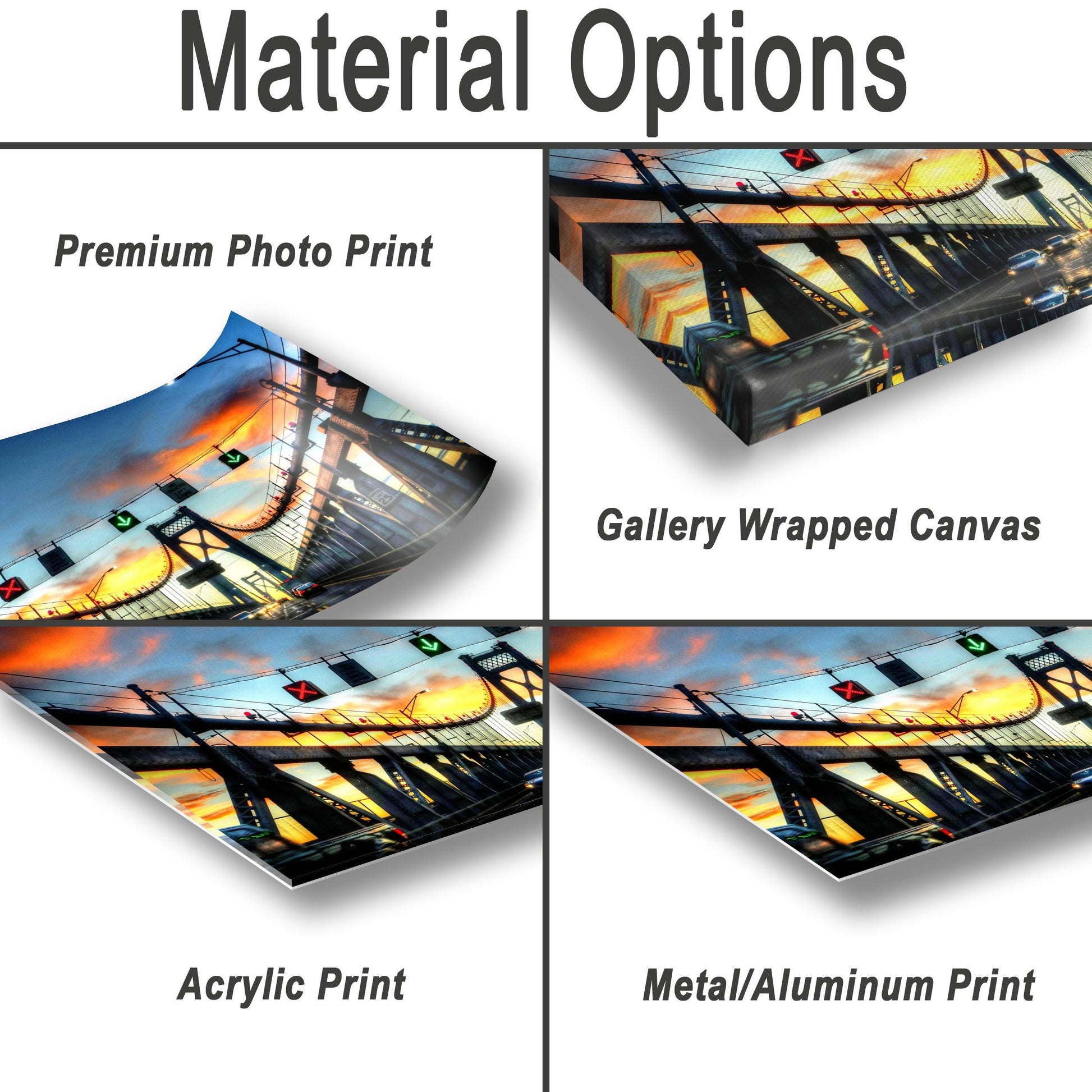 This sunrise bridge print is available in multiple formats to suit your style and space: