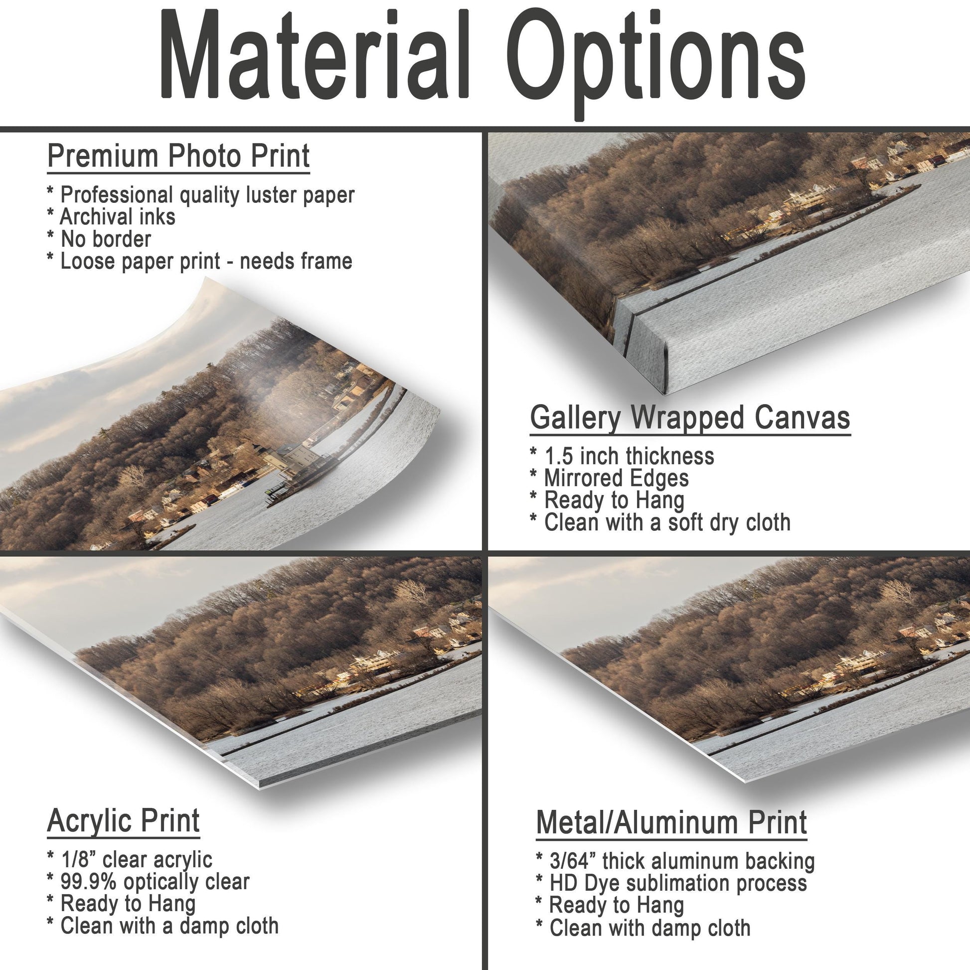 Each print option is crafted to preserve the vividness and detail of this historic river scene. The ready to hang canvas option ships within 10 days, arriving ready to display without extra effort. Glossy photo paper prints come in sizes 8x10, 11x14, or 16x20 inches and are designed for easy framing. Aluminum metal prints and acrylic wall decor offer long-lasting UV protection to prevent fading and maintain brilliance over time.