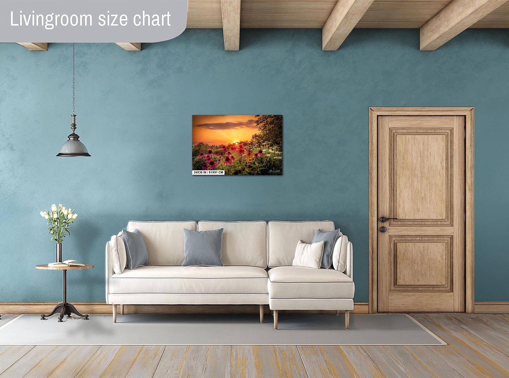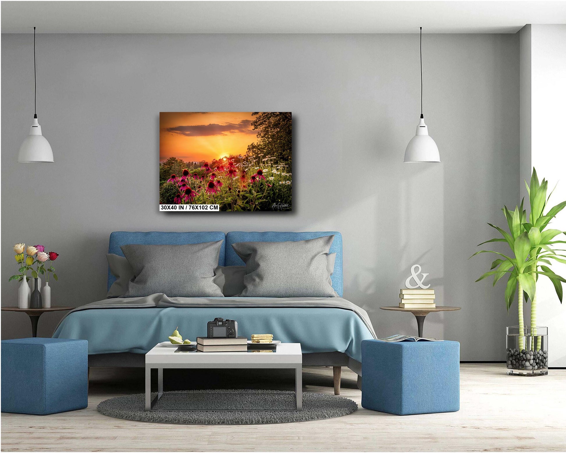 Choose from five print options designed to suit your style and space: glossy photo paper print, ready to hang art canvas, multi panel canvas, aluminum metal print, and acrylic prints. Each option uses UV resistant wall decor technology to ensure your sunset wildflowers print remains bright and fade-free for years. The ready to hang art canvases come with 1.5-inch thick wooden stretcher bars that provide a gallery-quality look without visible staples or edges.