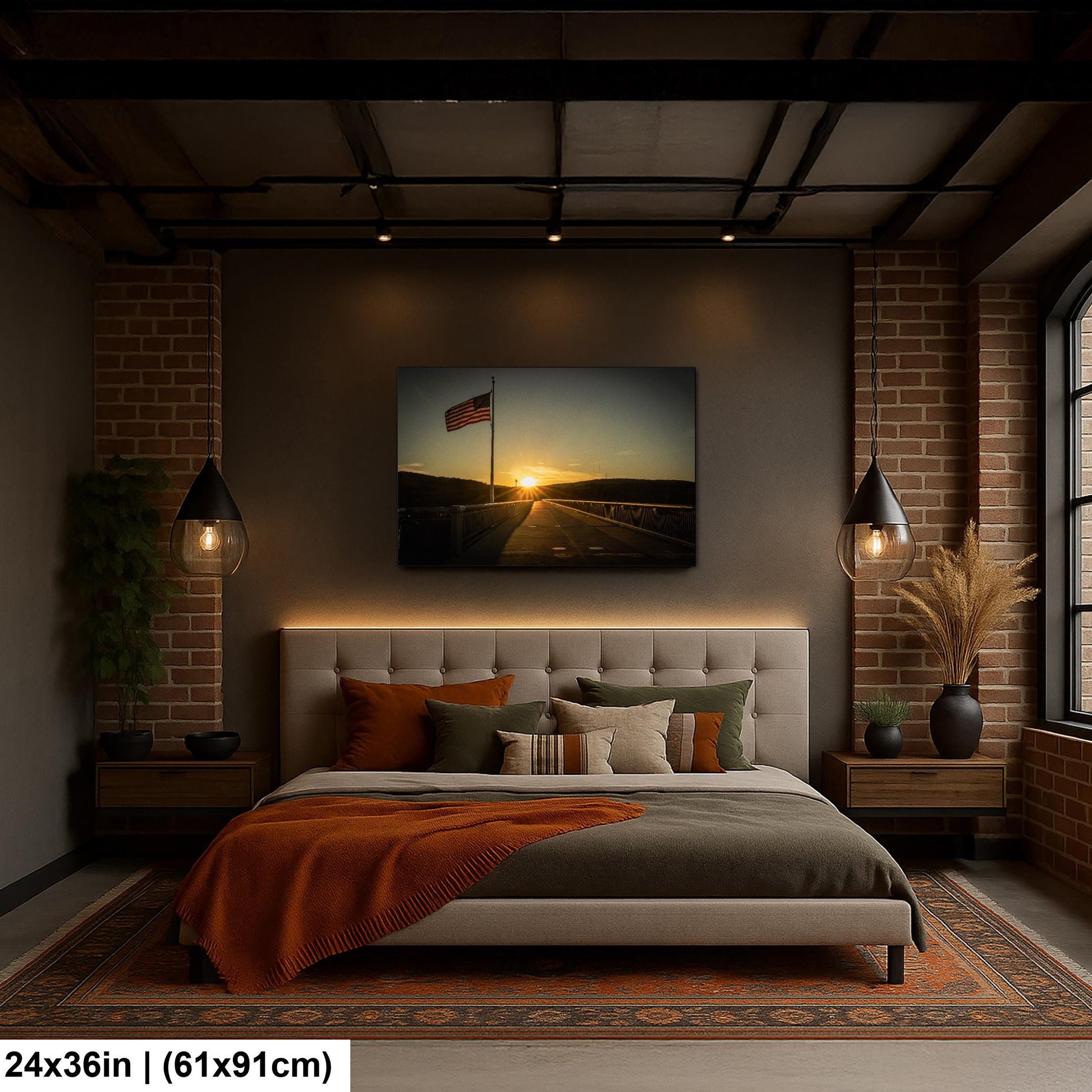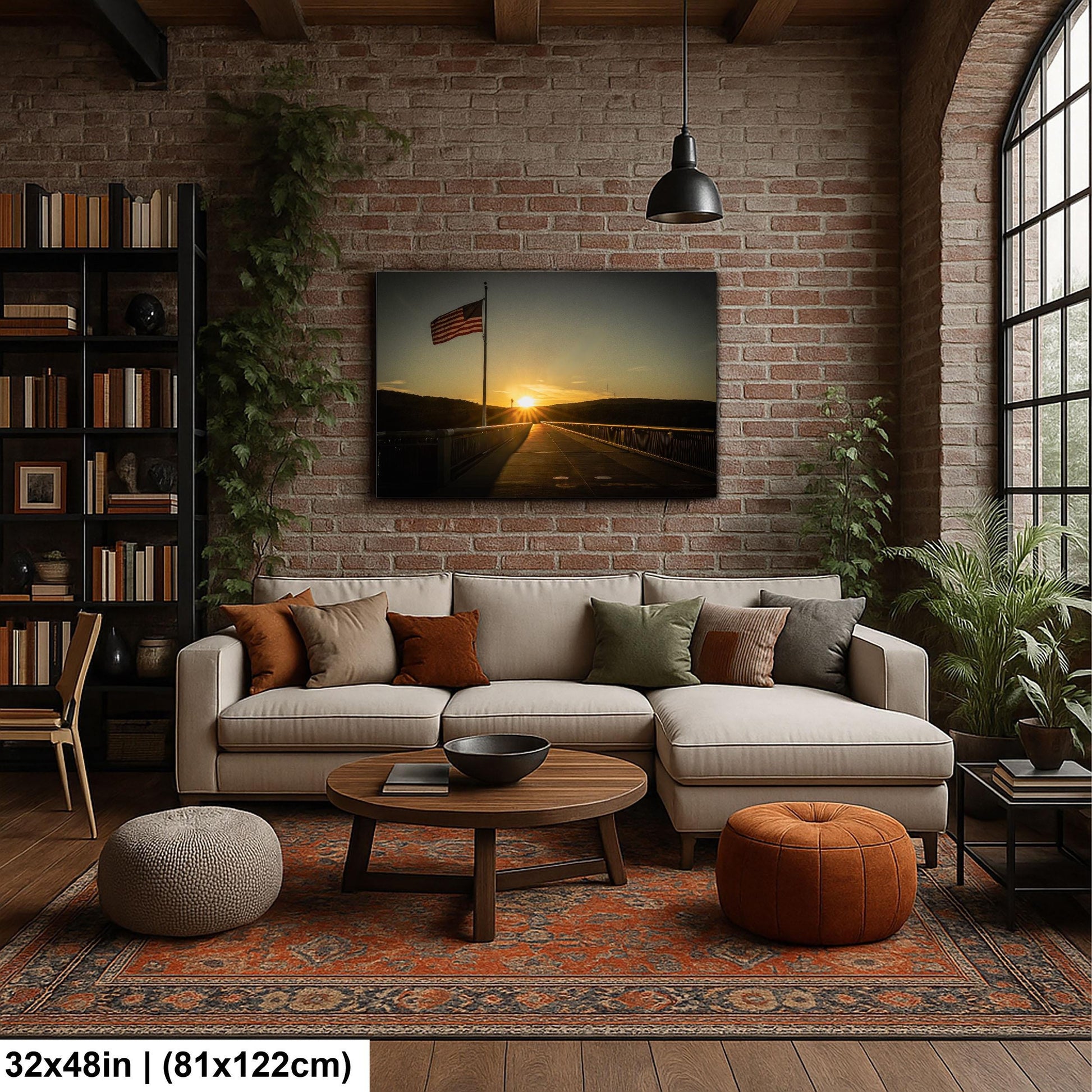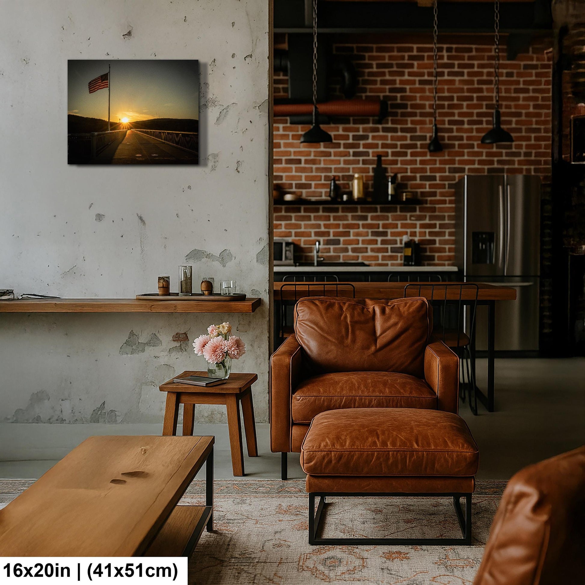 Each print showcases the American Flag Photo Print waving gently above the bridge, symbolizing resilience and history. The pedestrian bridge picture immortalizes a landmark once a steel railroad bridge built in 1889, now transformed into the world’s longest elevated pedestrian walkway since 2009. This Historic Landmark Poster celebrates the connection between past and present in the Hudson Valley.